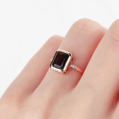 Кольцо с 2 бриллиантами природными, 0.008 карат, огранка круг 17 граней, цвет 2, чистота 2, тип огранки А; 1 кварцем дымчатым природным, 1.37 карат; Розовое золото 585 пробы.