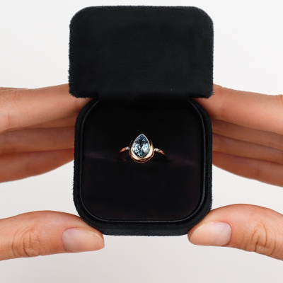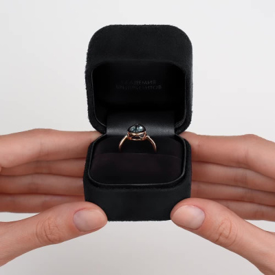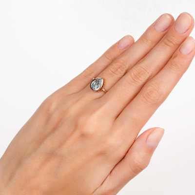 Кольцо с 2 бриллиантами природными, 0.008 карат, огранка круг 17 граней, цвет 2, чистота 2, тип огранки А; 1 топазом скай природным, 1.2 карат; Розовое золото 585 пробы.