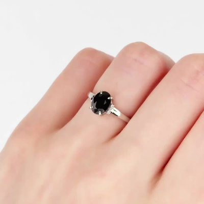 Кольцо с 6 бриллиантами природными, 0.02 карат, огранка круг 17 граней, цвет 2, чистота 2, тип огранки А; 1 сапфиром природным, 1.6 карат, цвет 2, чистота 2, тип огранки Б; Белое золото 585 пробы.