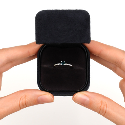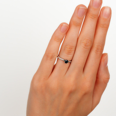 Кольцо с 10 бриллиантами природными, 0.02 карат, огранка круг 17 граней, цвет 2, чистота 2, тип огранки Б; 1 сапфиром природным, 0.28 карат, цвет 2, чистота 2, тип огранки В; Белое золото 585 пробы.