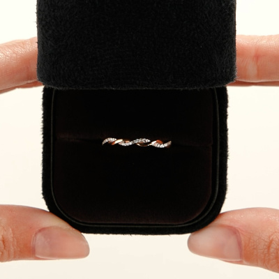 Кольцо с 21 бриллиантом природным, 0.04 карат, огранка круг 17 граней, цвет 2, чистота 2, тип огранки А; Розовое золото 585 пробы.