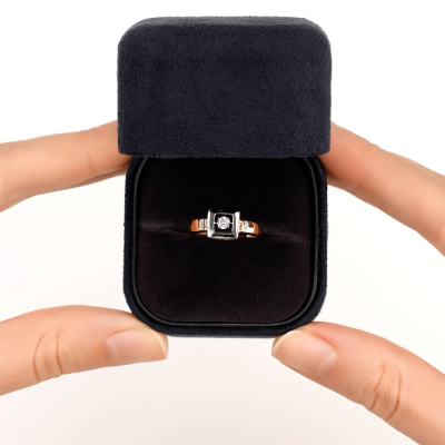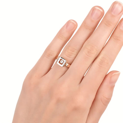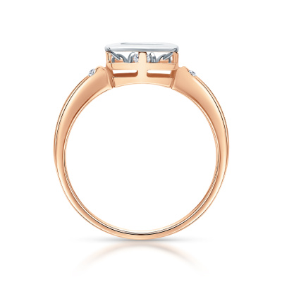 Кольцо с 1 бриллиантом природным, 0.1 карат, огранка круг 57 граней, цвет 3, чистота 6, тип огранки А; 6 бриллиантами природными, 0.01 карат, огранка круг 17 граней, цвет 2, чистота 2, тип огранки А; Розовое и белое золото 585 пробы.