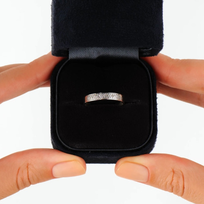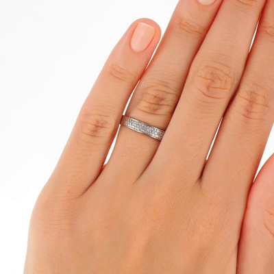 Кольцо с 55 бриллиантами природными, 0.13 карат, огранка круг 17 граней, цвет 2, чистота 2, тип огранки А; Белое золото 585 пробы.