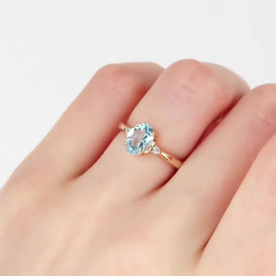 Кольцо с 2 бриллиантами природными, 0.01 карат, огранка круг 17 граней, цвет 2, чистота 2, тип огранки А; 1 топазом скай природным, 1.44 карат; Розовое и белое золото 585 пробы.
