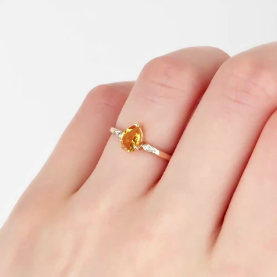 Кольцо с 2 бриллиантами природными, 0.01 карат, огранка круг 17 граней, цвет 2, чистота 2, тип огранки А; 1 цитрином природным, 0.57 карат; Розовое золото 585 пробы.