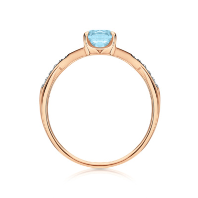 Кольцо с 10 бриллиантами природными, 0.05 карат, огранка круг 17 граней, цвет 2, чистота 2, тип огранки А; 1 топазом скай природным, 0.905 карат; Розовое золото 585 пробы.