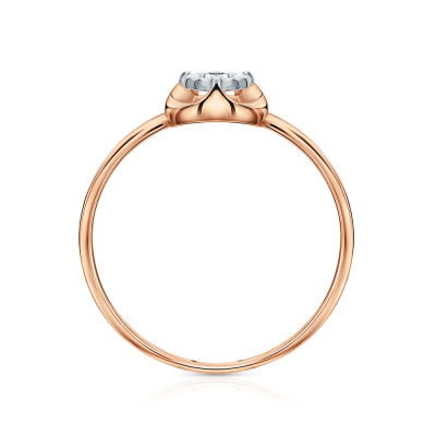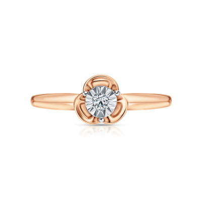 Кольцо с 1 бриллиантом природным, 0.02 карат, огранка круг 57 граней, цвет 3, чистота 6, тип огранки А; Розовое и белое золото 585 пробы.