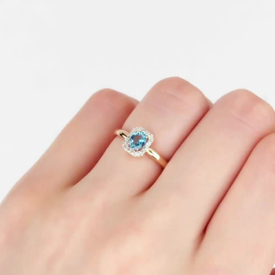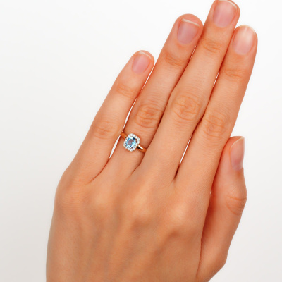 Кольцо с 16 бриллиантами природными, 0.08 карат, огранка круг 17 граней, цвет 2, чистота 2; 1 топазом свисс природным, 0.4 карат; Розовое золото 585 пробы.