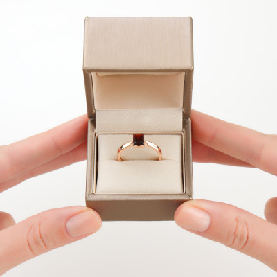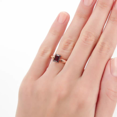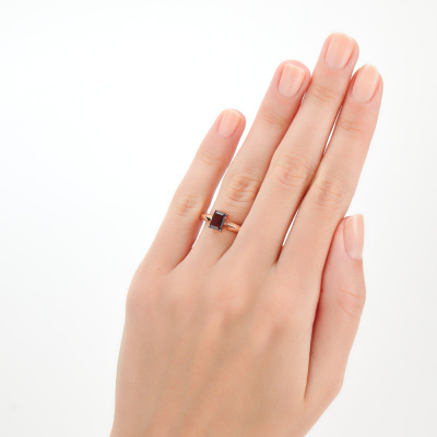 Кольцо с 1 гранатом природным, 1.28 карат; Розовое золото 585 пробы.