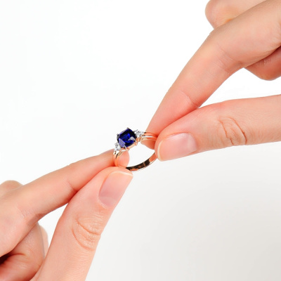 Золотое кольцо с бриллиантами выращенными и сапфирами выращенными