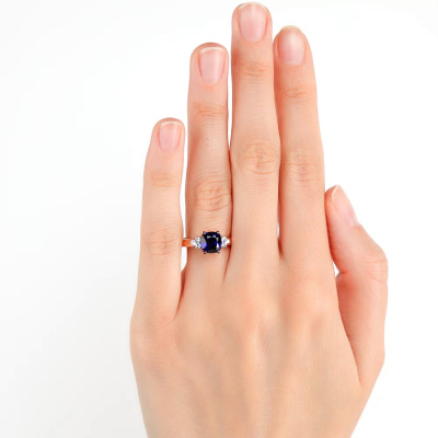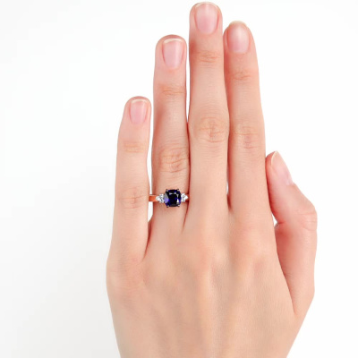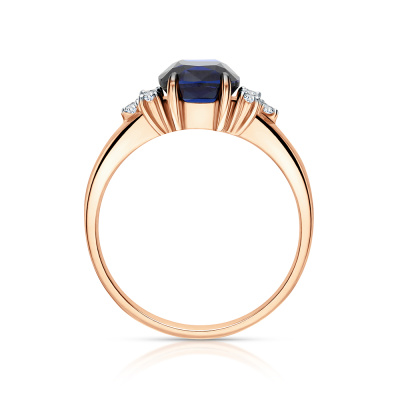 Кольцо с 1 сапфиром выращенным, 2.02 карат; 6 бриллиантами выращенными, 0.13 карат, огранка круг 57 граней, цвет 3, чистота 6; Розовое золото 585 пробы.
