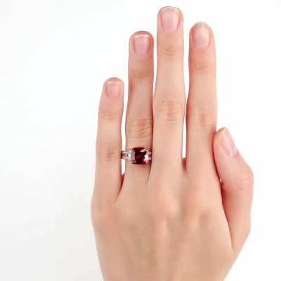 Кольцо с 1 рубином выращенным, 4.04 карат; 40 бриллиантами выращенными, 0.16 карат, огранка круг 57 граней, цвет 3, чистота 6; Розовое золото 585 пробы.