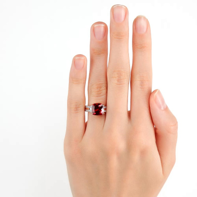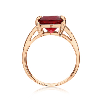 Золотое кольцо с бриллиантами выращенными и рубином выращенным