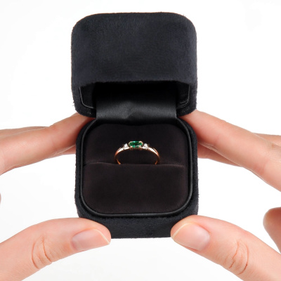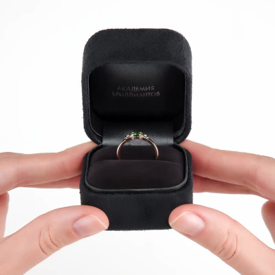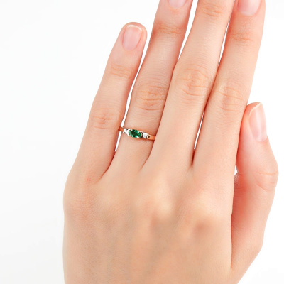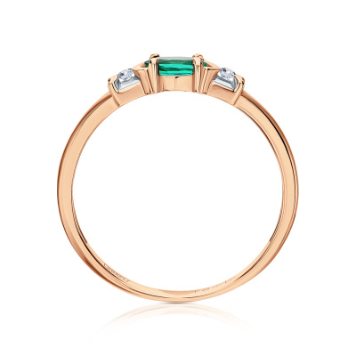 Кольцо с 2 бриллиантами природными, 0.03 карат, огранка круг 57 граней, цвет 3, чистота 6, тип огранки А; 1 гидротермальным изумрудом, 0.2 карат; Розовое золото 585 пробы.