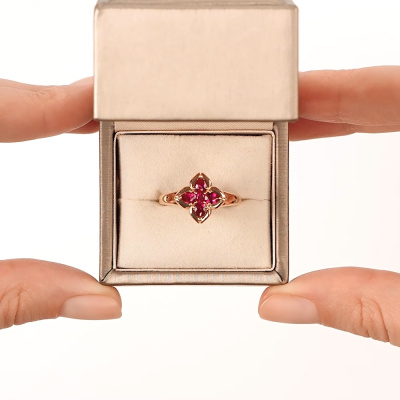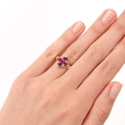 Кольцо, вставка: наноситал рубин; Розовое золото 585 пробы.
