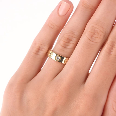 Кольцо с 1 бриллиантом природным, 0.04 карат, огранка круг 57 граней, цвет 3, чистота 6, тип огранки А; Желтое золото 585 пробы.