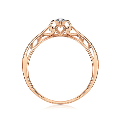 Кольцо с 1 бриллиантом природным, 0.02 карат, огранка круг 57 граней, цвет 4, чистота 6, тип огранки А; Розовое золото 585 пробы.