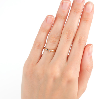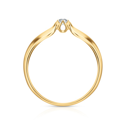 Кольцо с 1 бриллиантом природным, 0.02 карат, огранка круг 57 граней, цвет 3, чистота 6, тип огранки А; Желтое золото 585 пробы.