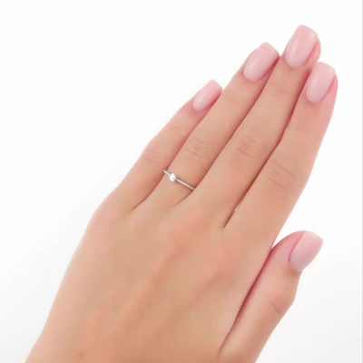 Кольцо с 1 бриллиантом природным, 0.05 карат, огранка круг 57 граней, цвет 3, чистота 6, тип огранки А; Белое золото 585 пробы.