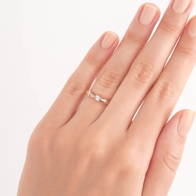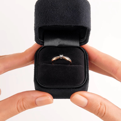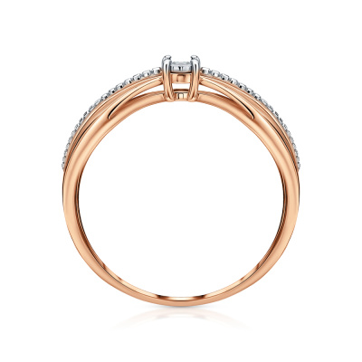 Кольцо с 1 бриллиантом природным, 0.01 карат, огранка круг 57 граней, цвет 3, чистота 5; Розовое золото 375 пробы.