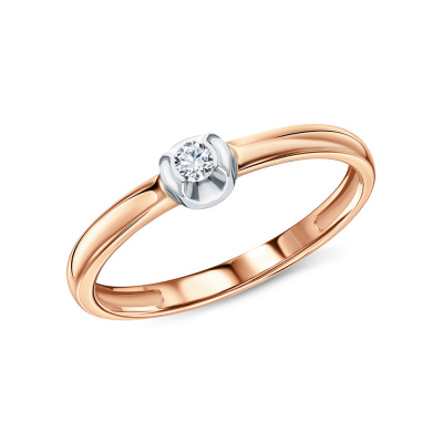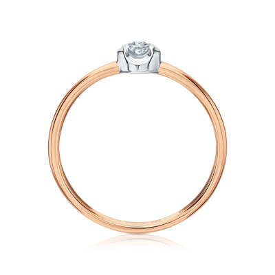 Кольцо с 1 бриллиантом природным, 0.05 карат, огранка круг 57 граней, цвет 3, чистота 6, тип огранки А; Розовое золото 585 пробы.