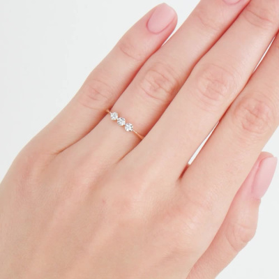 Кольцо с 3 бриллиантами природными, 0.01 карат, огранка круг 17 граней, цвет 2, чистота 2, тип огранки А; Розовое золото 375 пробы.