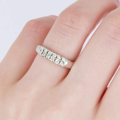 Кольцо с 12 бриллиантами природными, 0.06 карат, огранка круг 17 граней, цвет 2, чистота 2, тип огранки А; Белое золото 585 пробы.