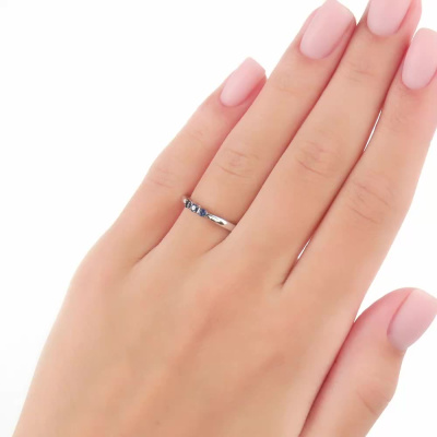 Кольцо с 3 сапфирами природными, 0.11 карат, цвет 2, чистота 2, тип огранки В; Белое золото 585 пробы.