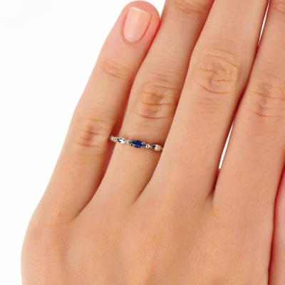 Кольцо с 1 сапфиром природным, 0.11 карат, цвет 2, чистота 2, тип огранки Б; Белое золото 585 пробы.