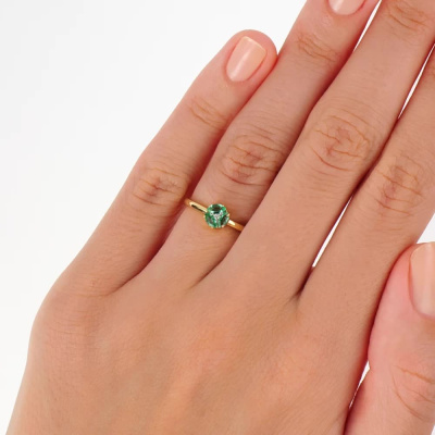 Кольцо с 1 бриллиантом природным, 0.005 карат, огранка круг 17 граней, цвет 2, чистота 2, тип огранки А; 3 изумрудами природными, 0.2 карат, цвет 3, чистота 3, тип огранки Б; Желтое золото 585 пробы.
