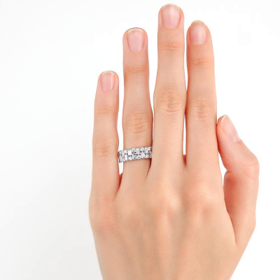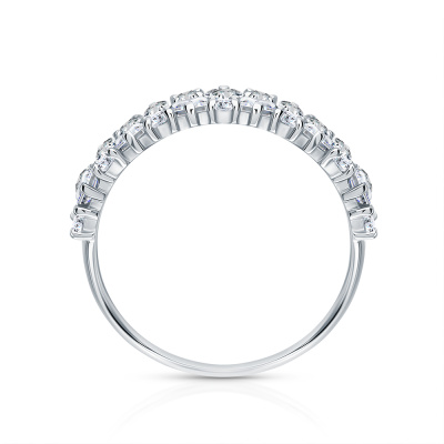 Кольцо с 13 бриллиантами выращенными, 1.06 карат, огранка багет 33 грани, цвет 3, чистота 6, тип огранки А; 13 бриллиантами выращенными, 0.43 карат, огранка круг 57 граней, цвет 3, чистота 6, тип огранки А; Белое золото 585 пробы.