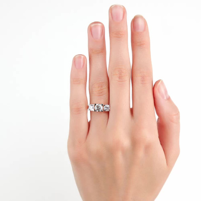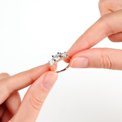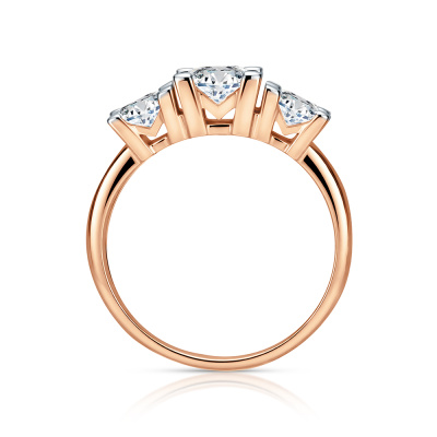 Кольцо с 1 бриллиантом выращенным, 0.76 карат, огранка круг 57 граней, цвет 3, чистота 5, тип огранки А; 2 бриллиантами выращенными, 1.02 карат, огранка круг 57 граней, цвет 4, чистота 5, тип огранки А; Розовое золото 585 пробы.