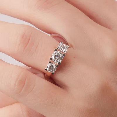 Кольцо с 1 бриллиантом выращенным, 0.84 карат, огранка круг 57 граней, цвет 3, чистота 6, тип огранки А; 2 бриллиантами выращенными, 1.03 карат, огранка круг 57 граней, цвет 3, чистота 6, тип огранки А; Розовое золото 585 пробы.
