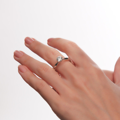 Кольцо с 1 бриллиантом выращенным, 1.04 карат, огранка круг 57 граней, цвет 2, чистота 3, тип огранки А; Белое золото 585 пробы.