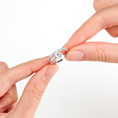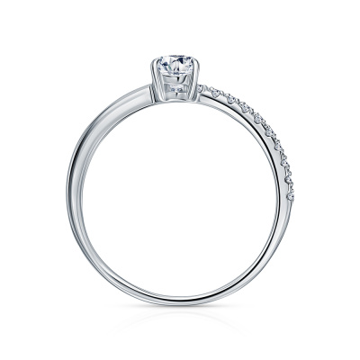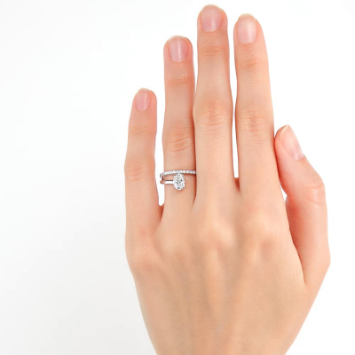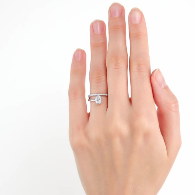 Кольцо с 1 бриллиантом выращенным, 0.69 карат, огранка овал 57 граней, тип огранки А; 21 бриллиантом выращенным, 0.15 карат, огранка круг 57 граней, цвет 3, чистота 6, тип огранки А; Белое золото 585 пробы.