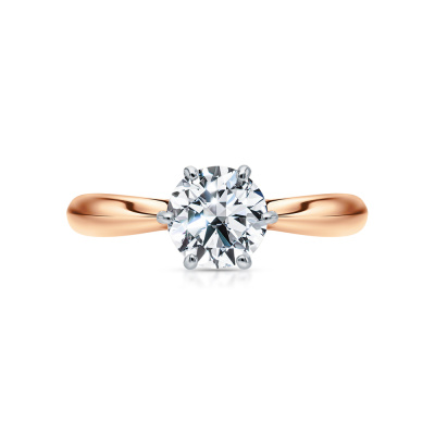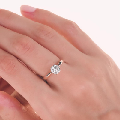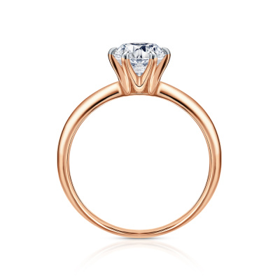 Кольцо с 1 бриллиантом выращенным, 1 карат, огранка круг 57 граней, цвет 4, чистота 5, тип огранки А; Розовое золото 585 пробы.