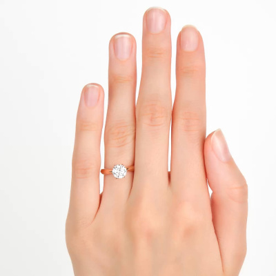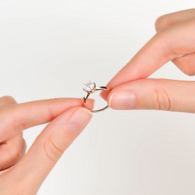 Кольцо с 1 бриллиантом выращенным, 1.03 карат, огранка круг 57 граней, цвет 4, чистота 5, тип огранки А; Розовое золото 585 пробы.
