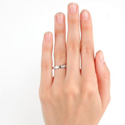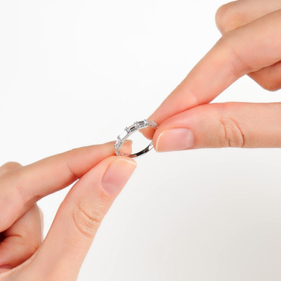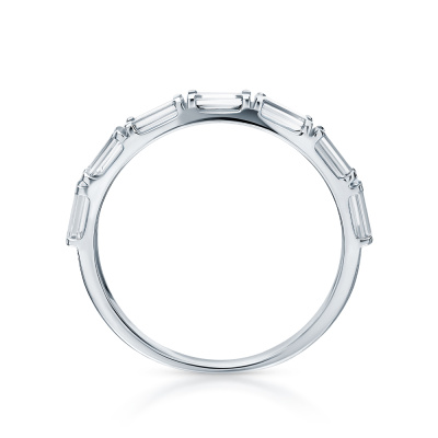 Кольцо с 7 бриллиантами выращенными, 0.79 карат, огранка багет 33 грани, цвет 3, чистота 6, тип огранки А; Белое золото 585 пробы.