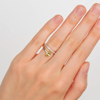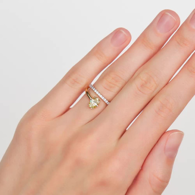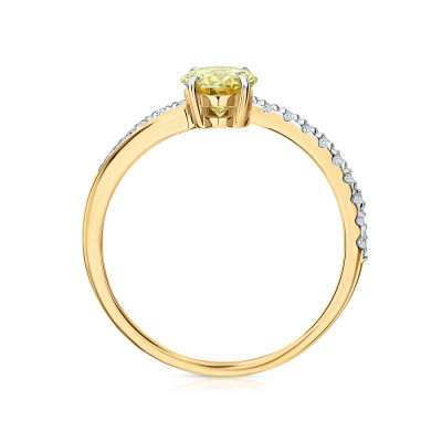 Кольцо с 1 бриллиантом выращенным, 0.72 карат, огранка овал 57 граней, цвет Желтый, чистота 5, тип огранки А; 21 бриллиантом выращенным, 0.15 карат, огранка круг 57 граней, цвет 3, чистота 6, тип огранки А; Желтое золото 585 пробы.