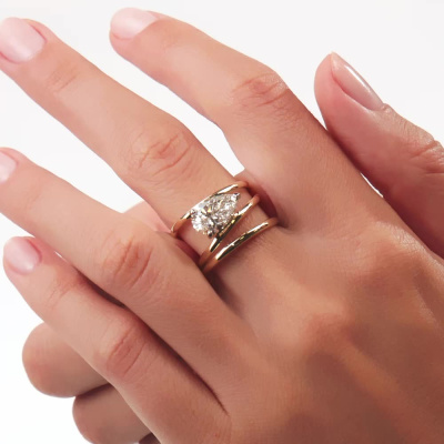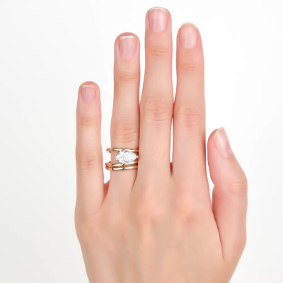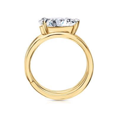 Кольцо с 1 бриллиантом выращенным, 1.9 карат, огранка груша 56 граней, цвет 3, чистота 5, тип огранки А; Желтое золото 585 пробы.