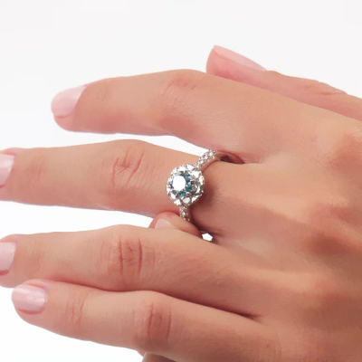 Кольцо с 1 бриллиантом выращенным, 0.84 карат, огранка круг 57 граней, цвет Голубой, чистота 5, тип огранки А; 6 бриллиантами выращенными, 0.67 карат, огранка круг 57 граней, цвет 3, чистота 6, тип огранки А; 2 бриллиантами выращенными, 0.06 карат, огранка круг 57 граней, цвет 3, чистота 6, тип огранки А; 2 бриллиантами выращенными, 0.04 карат, огранка круг 57 граней, цвет 3, чистота 6, тип огранки А; 2 бриллиантами выращенными, 0.02 карат, огранка круг 57 граней, цвет 3, чистота 6, тип огранки А; 2 бриллиантами выращенными, 0.01 карат, огранка круг 57 граней, цвет 3, чистота 6, тип огранки А; Белое золото 585 пробы.