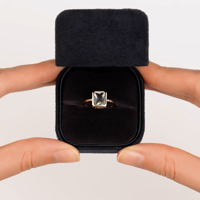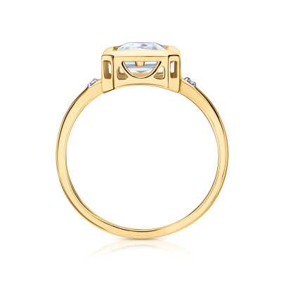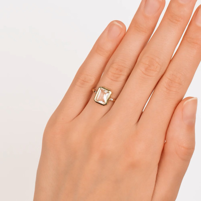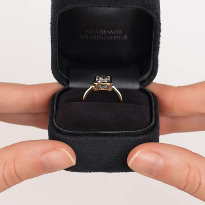 Кольцо с 2 бриллиантами природными, 0.008 карат, огранка круг 17 граней, цвет 2, чистота 2, тип огранки А; 1 горным хрусталем природным, 1.24 карат; Желтое золото 585 пробы.