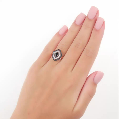 Кольцо с 22 бриллиантами природными, 0.1 карат, огранка круг 17 граней, цвет 2, чистота 2, тип огранки А; 1 сапфиром природным, 0.62 карат, цвет 2, чистота 2, тип огранки Б; 32 сапфирами природными, 0.24 карат, цвет 2, чистота 2, тип огранки В; Розовое золото 585 пробы.