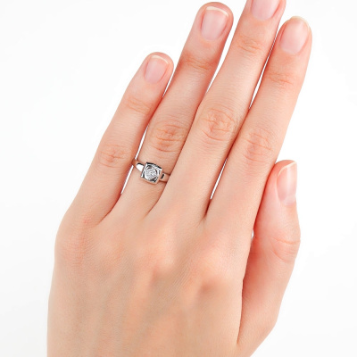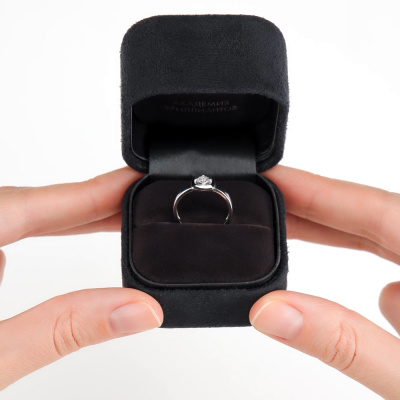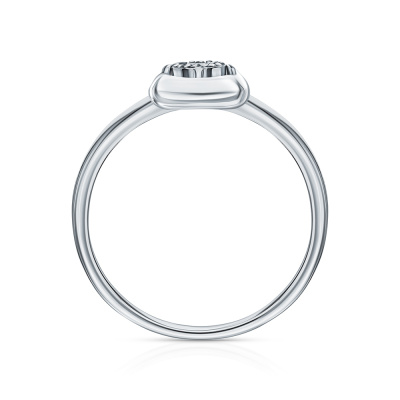 Кольцо с 1 бриллиантом природным, 0.01 карат, огранка круг 57 граней, цвет 3, чистота 6, тип огранки А; 8 бриллиантами природными, 0.01 карат, огранка круг 17 граней, цвет 2, чистота 2, тип огранки А; Белое золото 585 пробы.