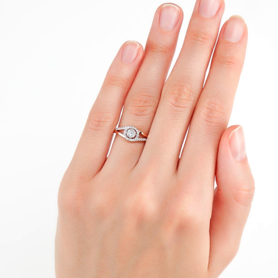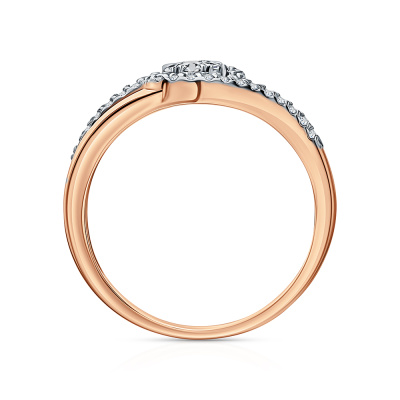 Кольцо с 1 бриллиантом природным, 0.01 карат, огранка круг 57 граней, цвет 3, чистота 6, тип огранки А; 6 бриллиантами природными, 0.04 карат, огранка круг 57 граней, цвет 3, чистота 6, тип огранки А; 30 бриллиантами природными, 0.07 карат, огранка круг 17 граней, цвет 2, чистота 2, тип огранки А; Розовое и белое золото 585 пробы.