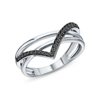 Кольцо с 3 бриллиантами черными природными облагороженными, 0.04 карат, огранка круг 57 граней, цвет 7, чистота 6, тип огранки А; 3 бриллиантами черными природными облагороженными, 0.03 карат, огранка круг 57 граней, цвет 7, чистота 6, тип огранки А; 4 бриллиантами черными природными облагороженными, 0.03 карат, огранка круг 57 граней, цвет 7, чистота 6, тип огранки А; 13 бриллиантами черными природными облагороженными, 0.06 карат, огранка круг 57 граней, цвет 7, чистота 6, тип огранки А; Белое золото 585 пробы.