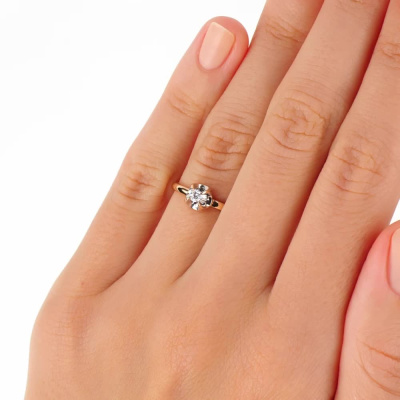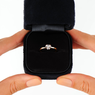 Кольцо с 1 бриллиантом природным, 0.06 карат, огранка круг 57 граней, цвет 3, чистота 6, тип огранки А; Розовое золото 585 пробы.