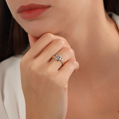 Кольцо с 1 бриллиантом природным, 0.005 карат, огранка круг 17 граней, цвет 3, чистота 3, тип огранки Б; Серебро 925 пробы.