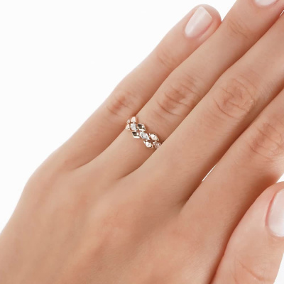 Кольцо с 5 бриллиантами природными, 0.01 карат, огранка круг 17 граней, цвет 2, чистота 2, тип огранки А; Розовое золото 585 пробы.