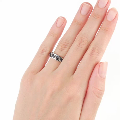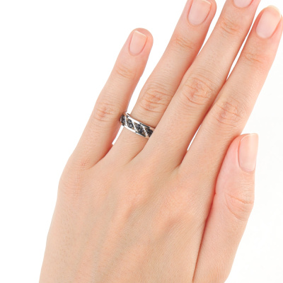 Кольцо с 25 бриллиантами природными, 0.05 карат, огранка круг 17 граней, цвет 2, чистота 2, тип огранки А; 10 сапфирами природными, 0.43 карат, цвет 2, чистота 2, тип огранки В; Белое золото 585 пробы.